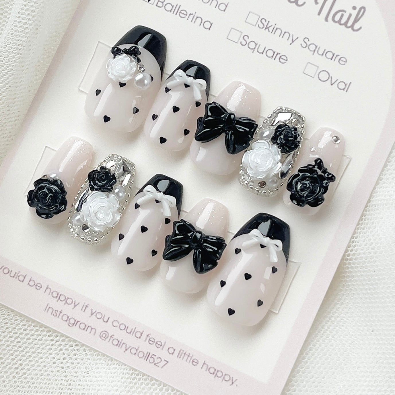 ご自身の爪の形、またサイズの測り方によっては合わない場合もございます。